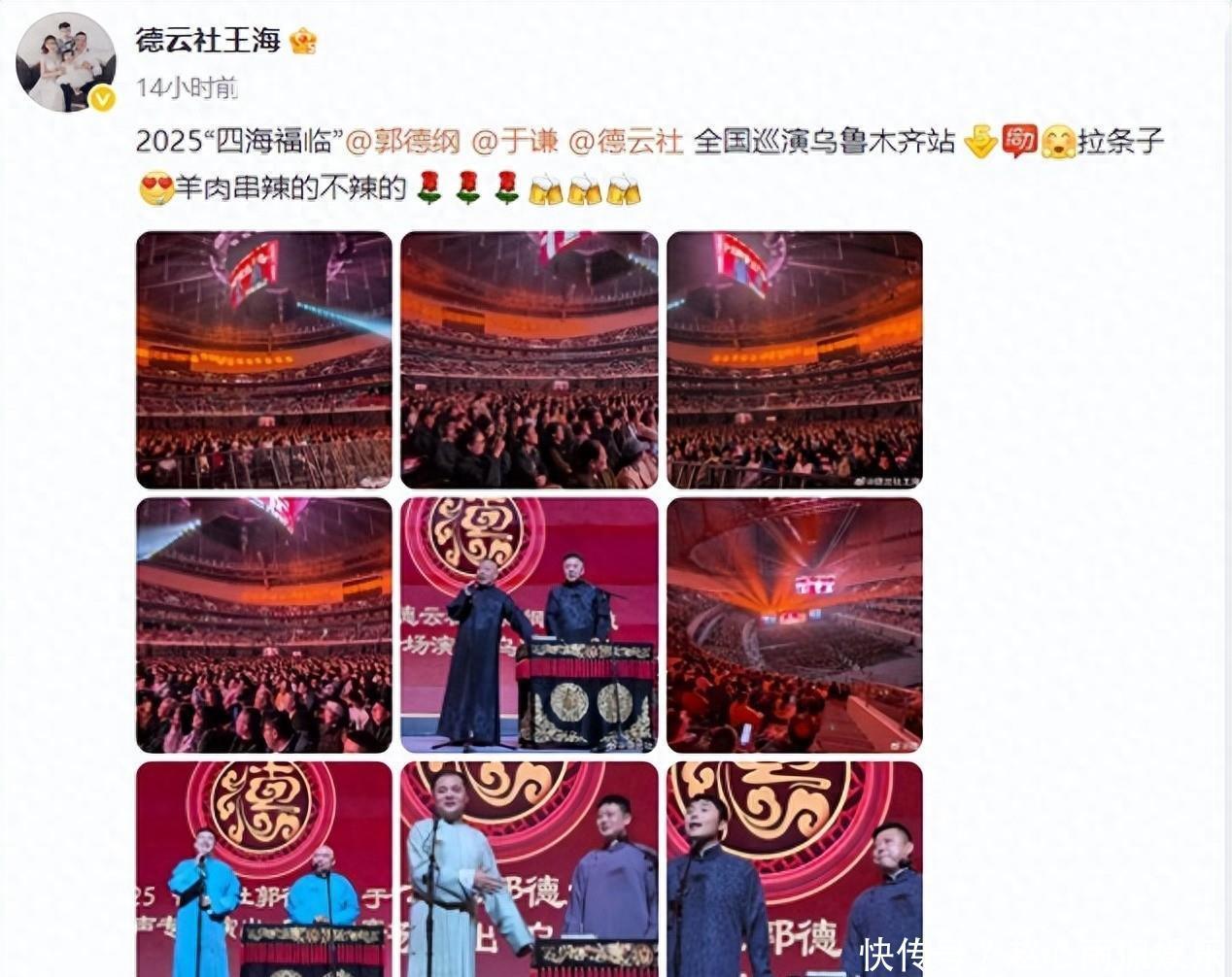 德云社郭德纲经纪人王海凌晨发文,晒演出照,把观众放在第一位。文案中,王海还提到了乌鲁木齐的美食,拉条子、羊肉串,不仅演出圆满成功,吃的、玩得也是非常开心、尽兴。郭德纲乌鲁木齐演出,都带着谁去的呢?现场上座率如何?观众热情吗?为什么德云社演员特别喜欢在专场结束后晒观众席照呢?郭德纲接下来还有哪些演出安排呢?